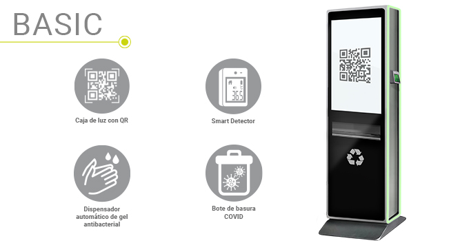 BASIC: Kiosko ALL IN ONE ideal para toma de temperatura de manera rápida y sin contacto con el espacio publicitario.