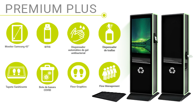 PREMIUM PLUS: Kiosko ALL IN ONE complemento especial versión premium con plataforma para el control de aforos en sitios públicos.
